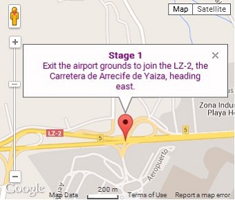 Exit the airport grounds to join the LZ-2, the Carretera de Arrecife de Yaiza, heading east.