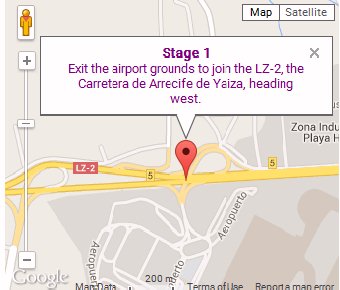 Exit the airport grounds to join the LZ-2 the Carretera de Arrecife de Yaiza, heading west..