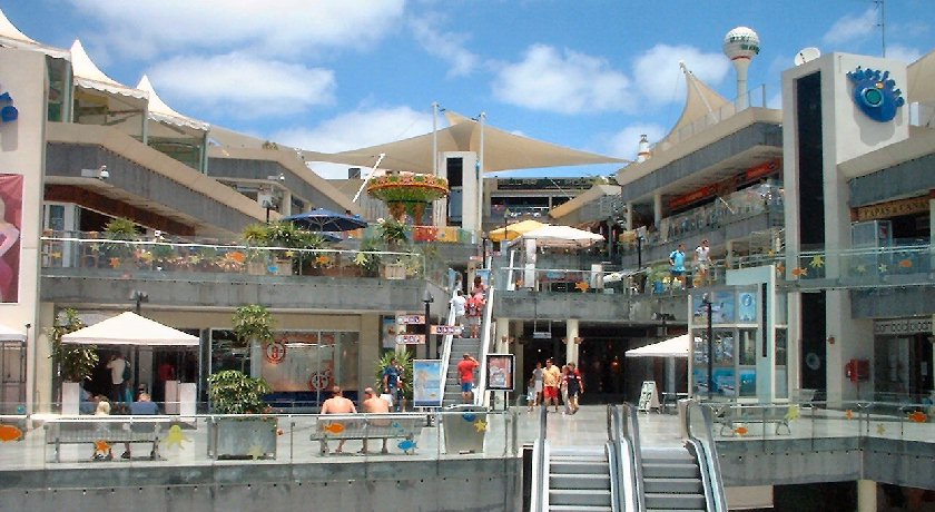 There are four floors of shops, amusements and restaurants in a modern shopping centre overlooking the old town of Puerto del Carmen.